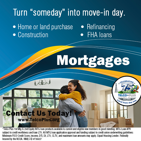 ***Telco Plus 1st Mtg & 2nd Equity MTG loan products available to current and eligible new members in good standing. MTG Loan APR subject to credit worthiness and loan LTV. All MTG loan application approval and funding subject to credit union underwriting guidelines: Minimum FICO Credit Score, income, DTI, DI, LTV, CLTV, and maximum loan amounts may apply.